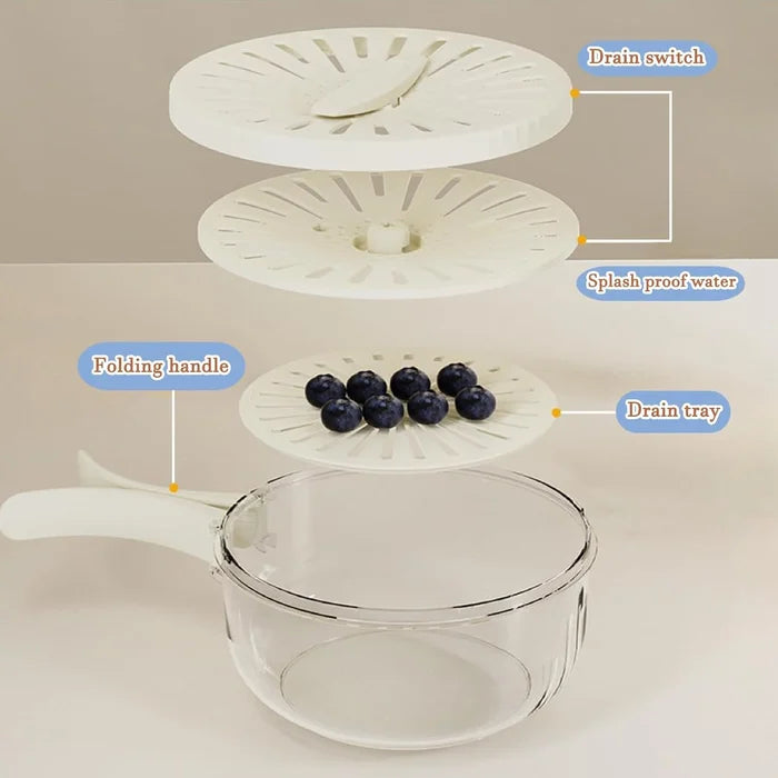 עיצוב רב-תכליתי: הקערה הרב-תכליתית שלנו לשטיפת פירות וירקות מעוצבת עם מסננת פנימית נשלפת לסינון, מיכל חיצוני שקוף לאחסון, וכיסוי אטום לשמירה על טריות התוכן, ומספקת חווית שימוש נעימה.